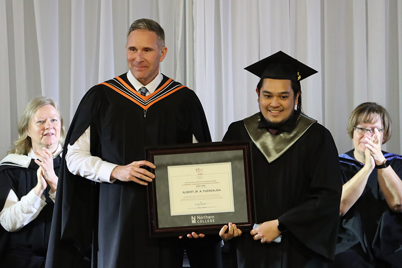 This year’s prestigious Governor General’s Academic Medal, awarded to the student with the highest-grade average of any student in their graduating class, went to 29-year-old Albert Jr. A. Fuensalida, an Electrical Engineering Technician program graduate at the Timmins Campus. He achieved an impressive overall average